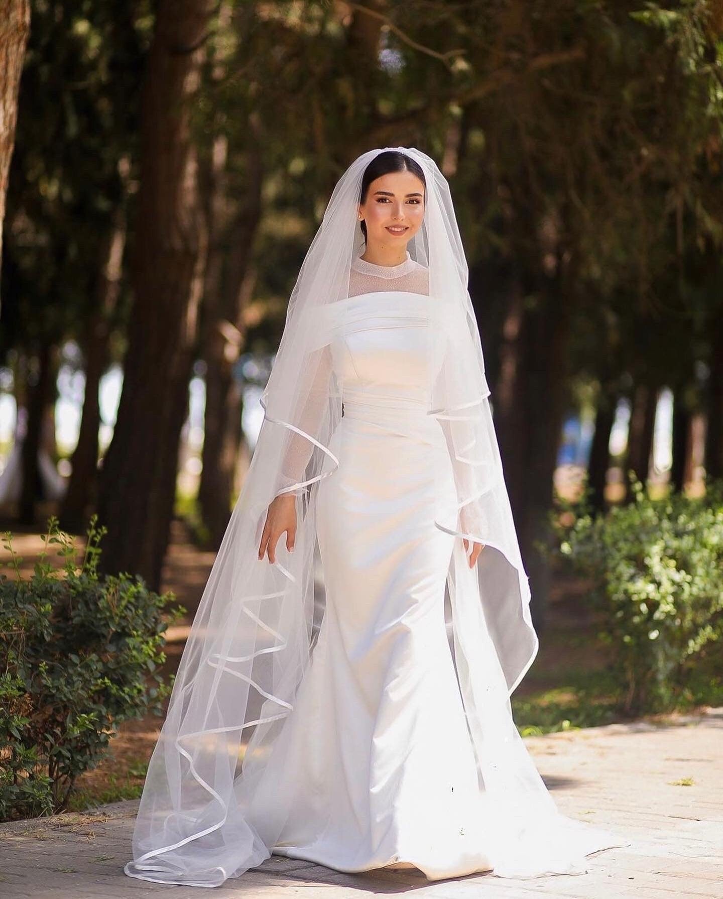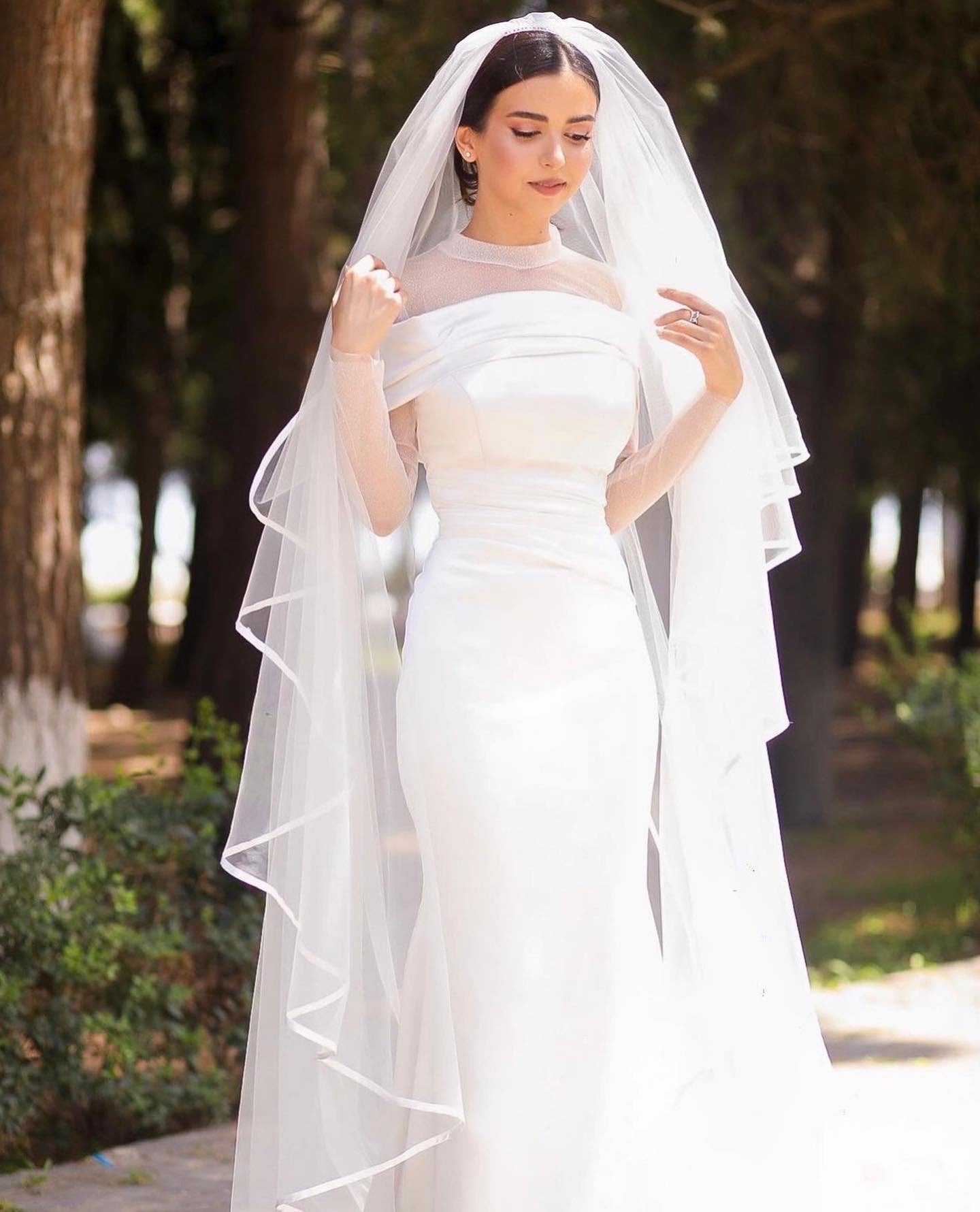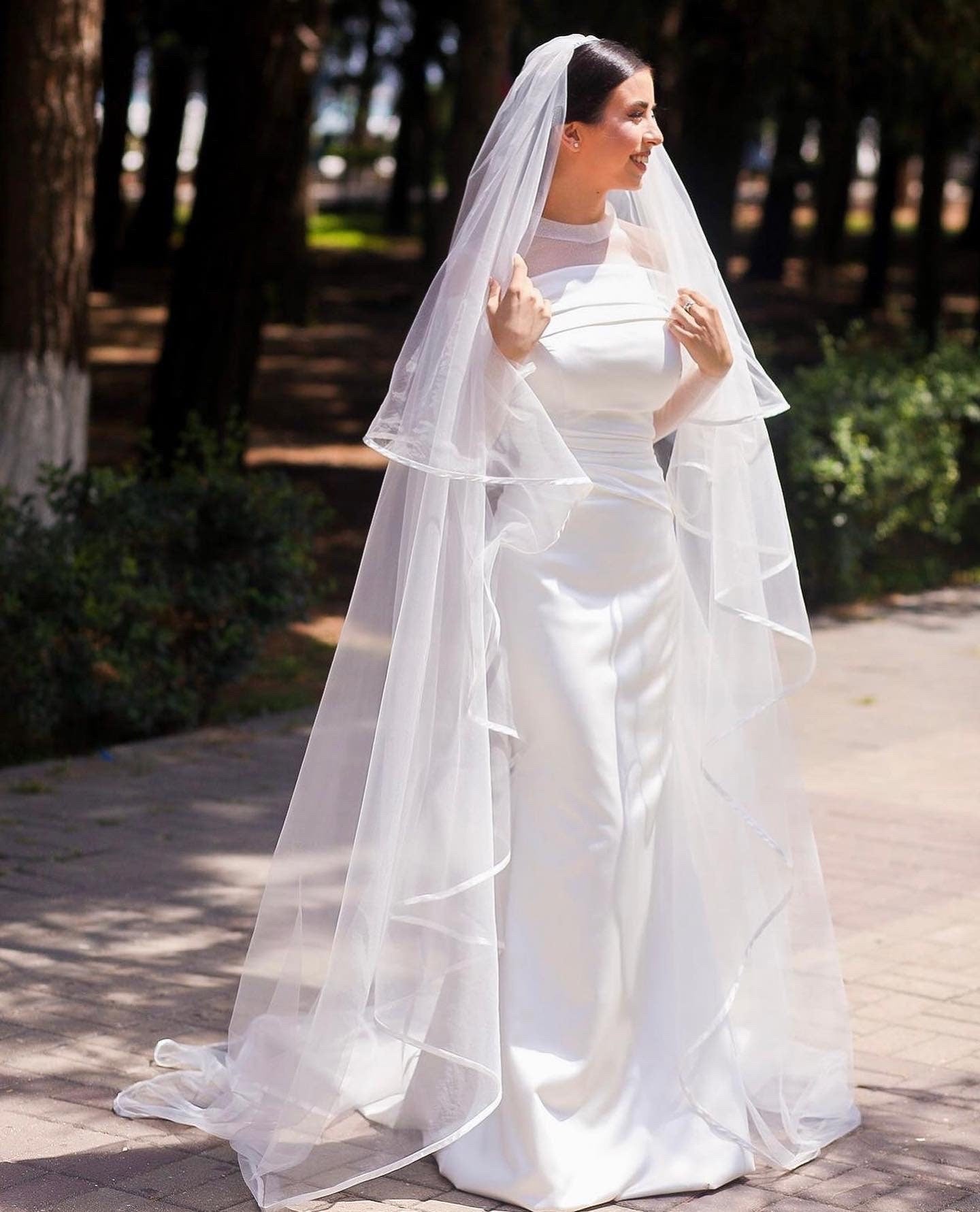 ❤ SIZE You can choose any type of wedding veil length. Your choice includes selecting the length of the front ("lenght blusher",face-covering) part of the veil and the main length of the veil ("lenght veil", covering the back). We want to note that upon receipt, there may be a difference of up to ±2 cm in the length of the veil from the one ordered due to technical reasons. Also, if you need a veil length different from those specified for selection, choose a longer length and be sure to indicate the required length in the order comments. ❗️The width of the satin ribbon is 1 cm (0.39 inches).