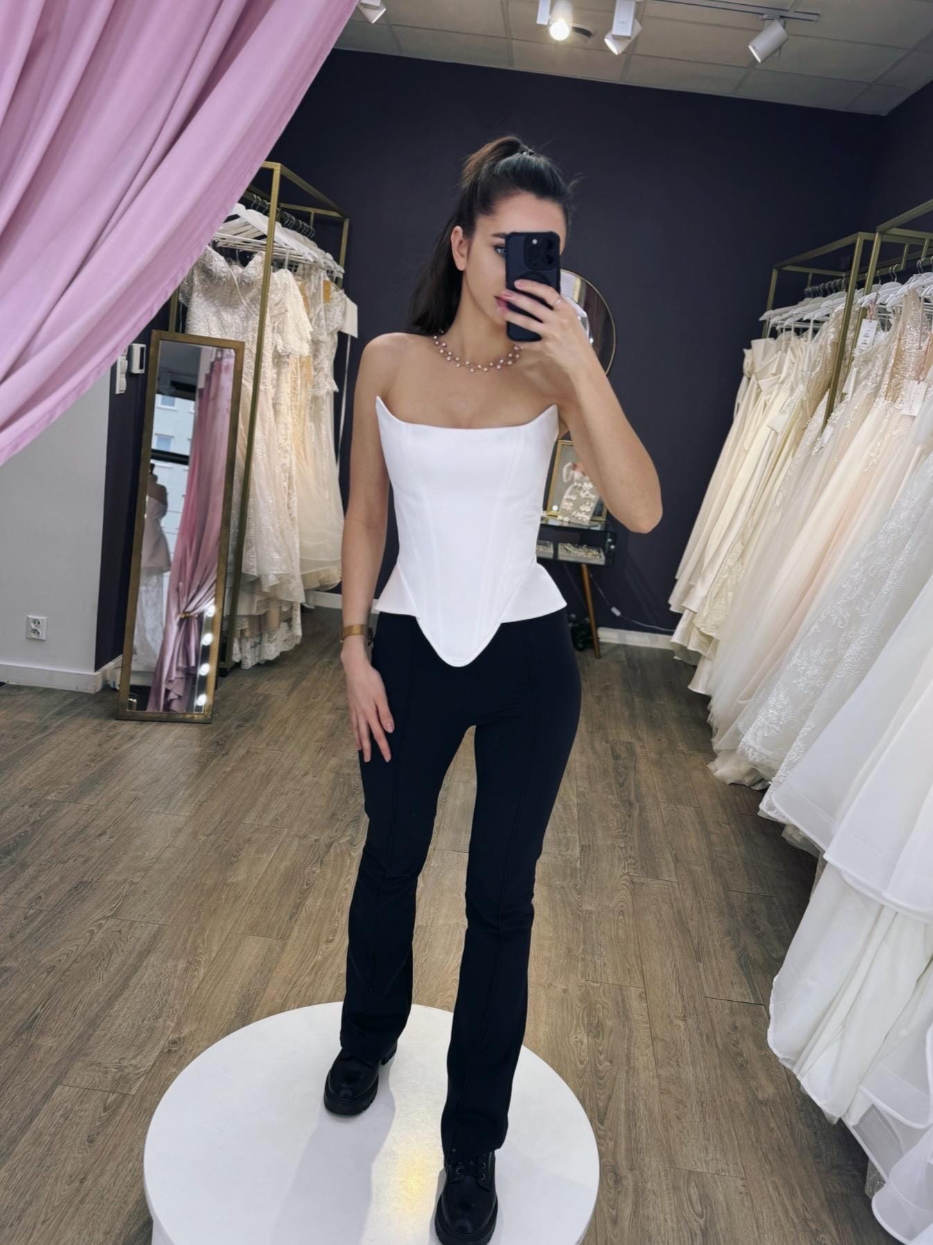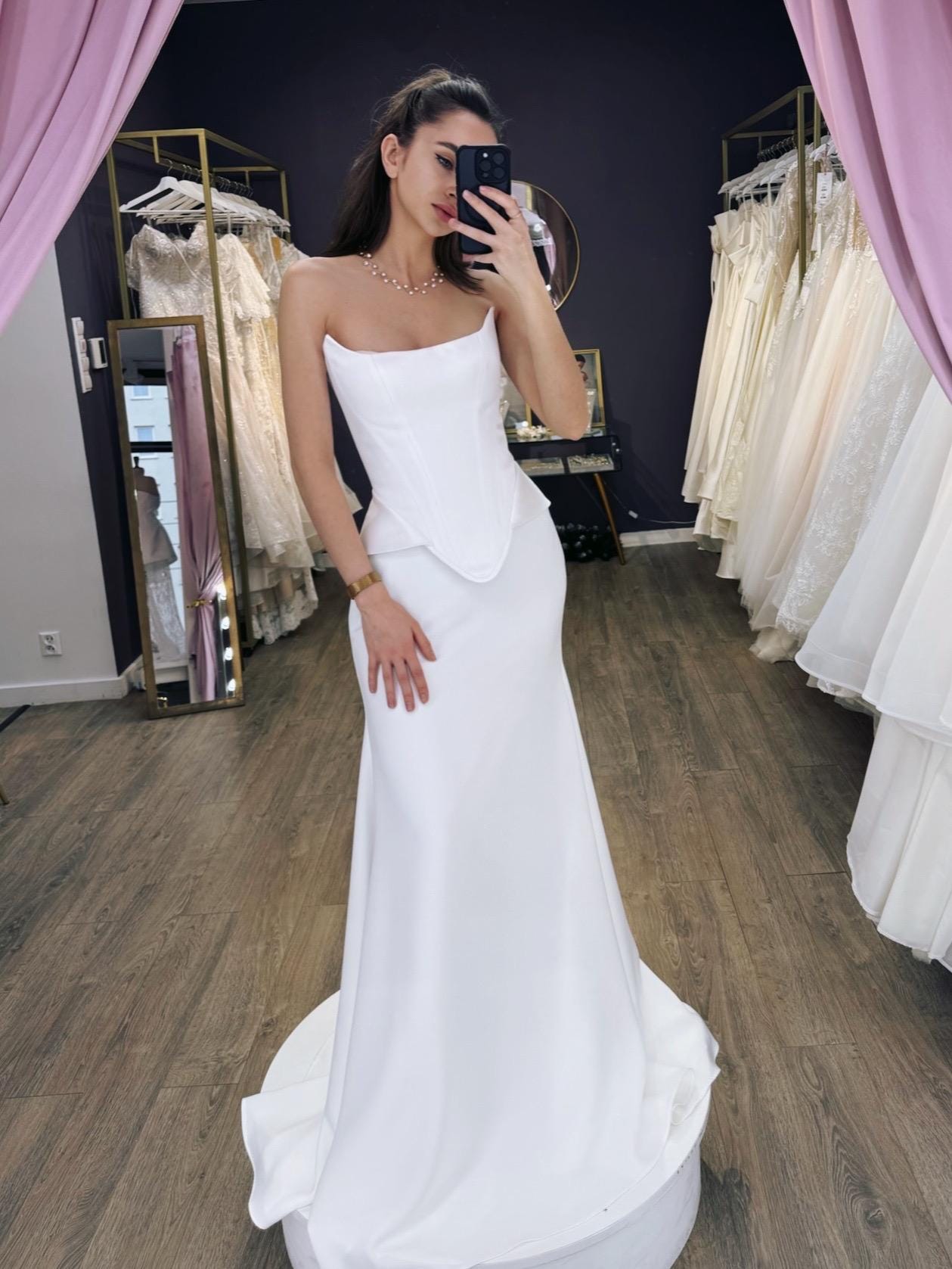 The clean neckline and internal boning provide both style and support, making this corset ideal for brides seeking comfort without compromising on sophistication. Whether styled as part of a two-piece bridal set or as a standalone statement, ARNO is perfect for contemporary weddings, fashion-forward ceremonies, and stylish civil unions.