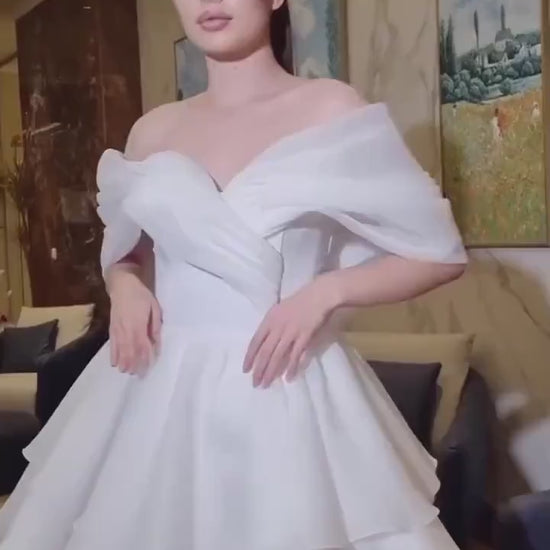 JIRAFA Off Shoulder Organza Short Wedding Dress • Puffy Mini Bridal Dress • Colorful Party Gown • Layered Ruffle Dress • Reception Dress